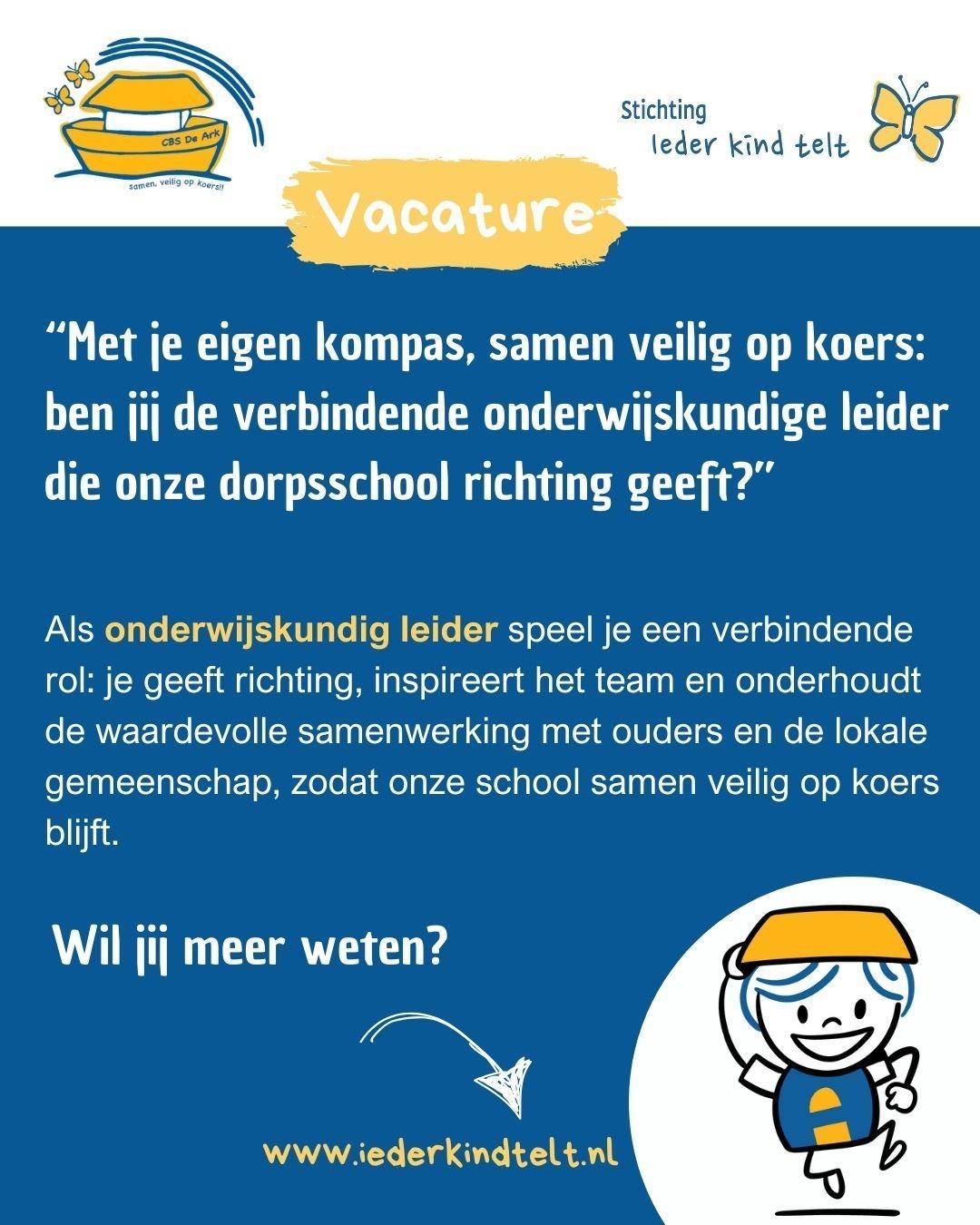 Ben jij of ken jij de verbindende onderwijskundige leider die onze Ark richting wil geven? Klik dan snel hier voor meer informatie.